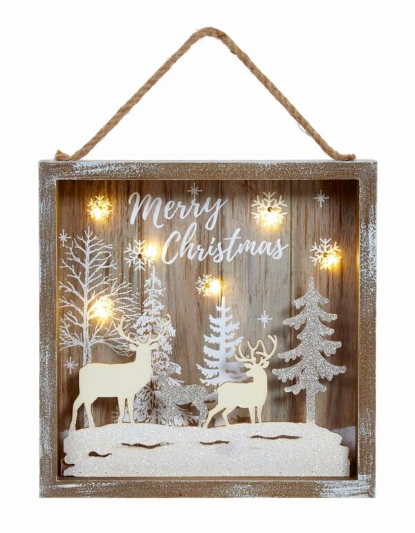 24cm Reindeer In Forest Square Wooden Decoration