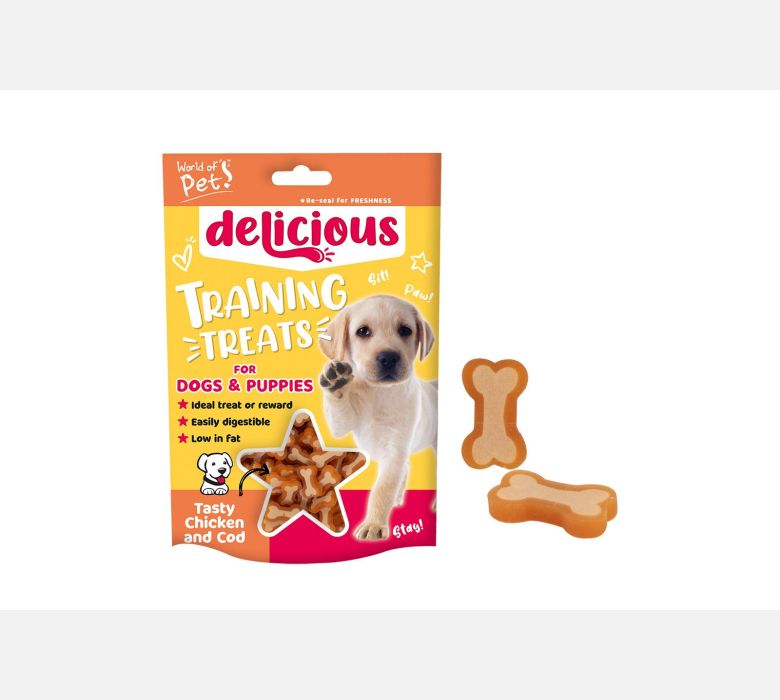 Delicious chicken and cod flavoured training treats for dogs and puppies. Perfect for a tasty snack or for rewarding good behaviour.