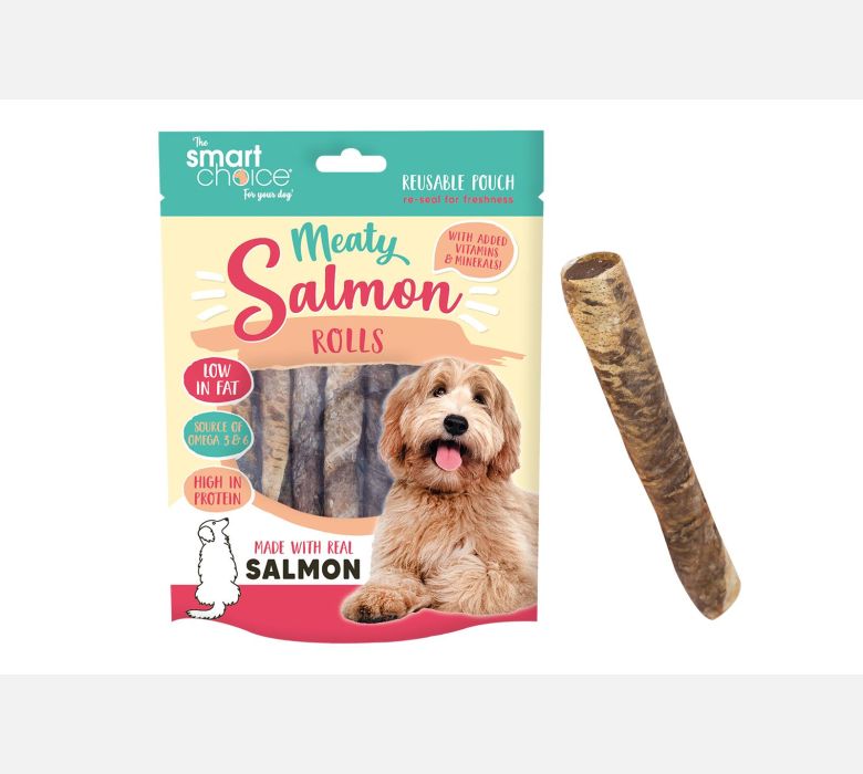 Meaty salmon rolls. Perfect for a tasty snack or for rewarding good behaviour.