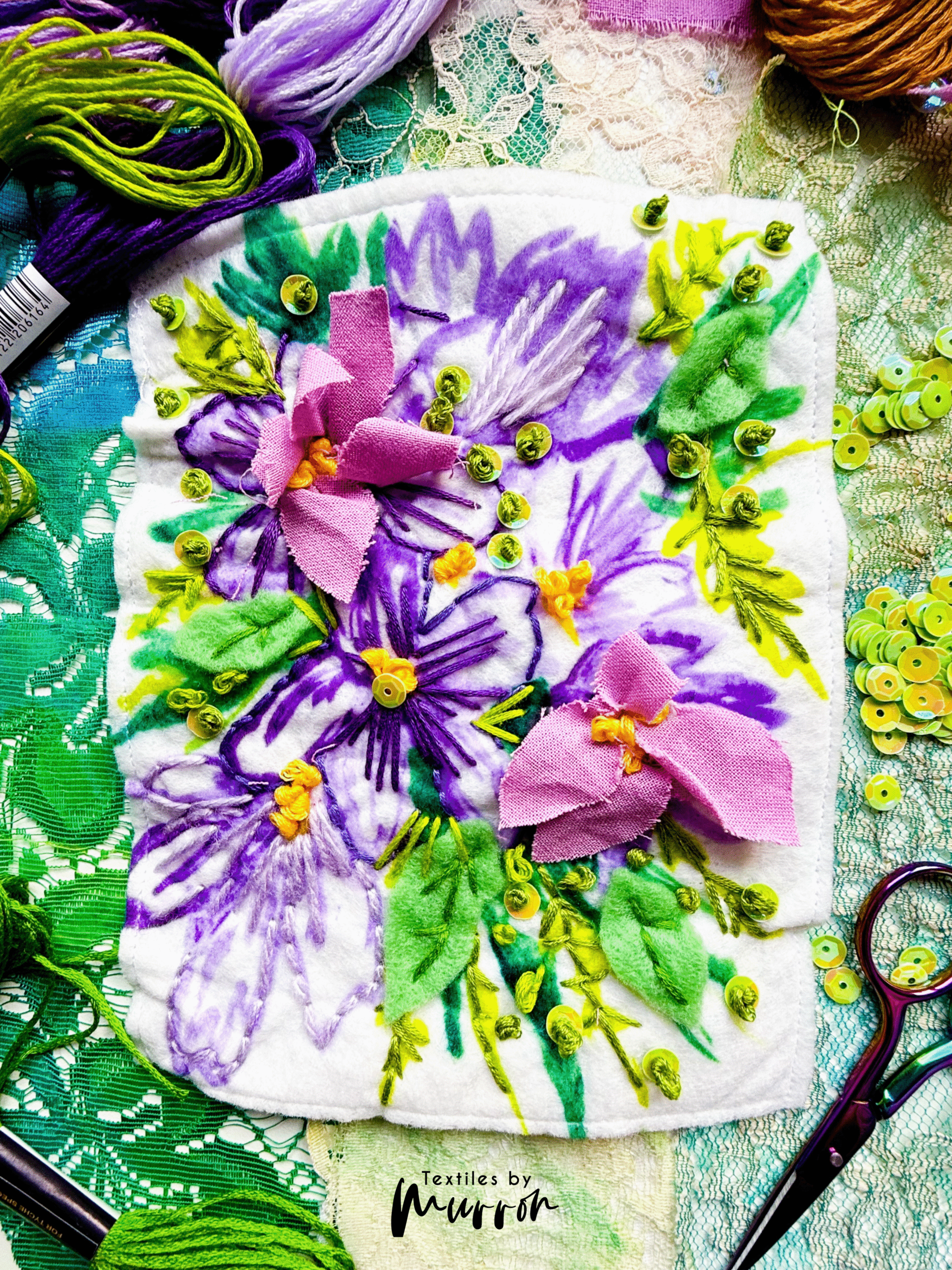 Spring Flora – Embroidered postcards – with Textiles by Murron