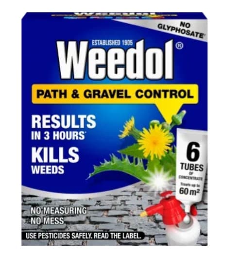 Weedol® Path & Gravel Weed Control Concentrate Tubes are a pre-mixed concentrate weedkiller that is ideal for use on gravel paths, permeable patios and driveways. Once sprayed, the active ingredient pelargonic acid starts working immediatley giving you results in 3 hours and breaks down in soil naturally – leaving the area ready for replanting in just 3 days. The easy dose concentrated formula makes it convenient for treating large areas and saves plastic. Just snap the tube, add water, mix and spray.
